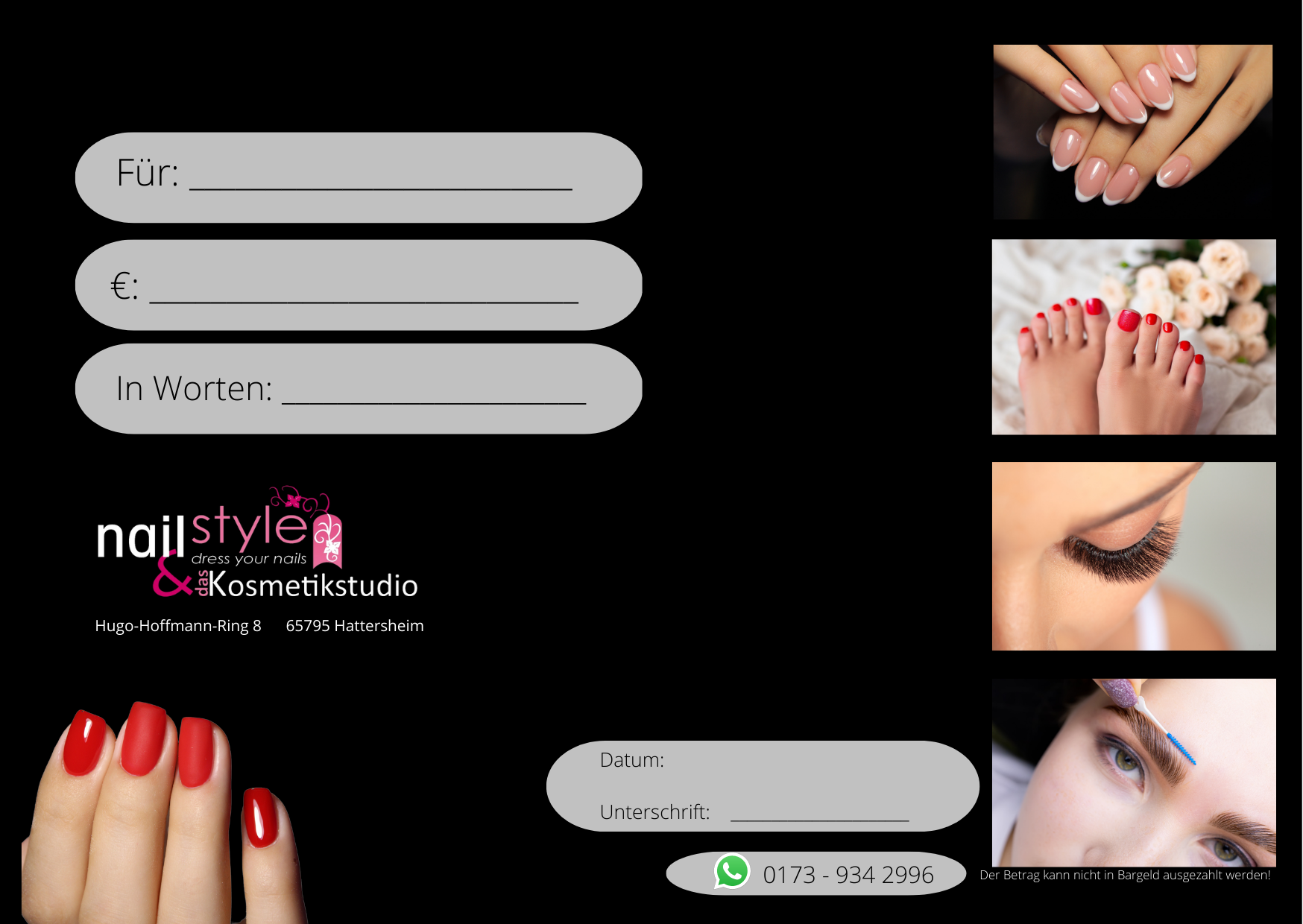 In unserem Kosmetikstudio in Hattersheim bieten wir aktuell folgende Serviceleistungen an: Nageldesign & Maniküre.